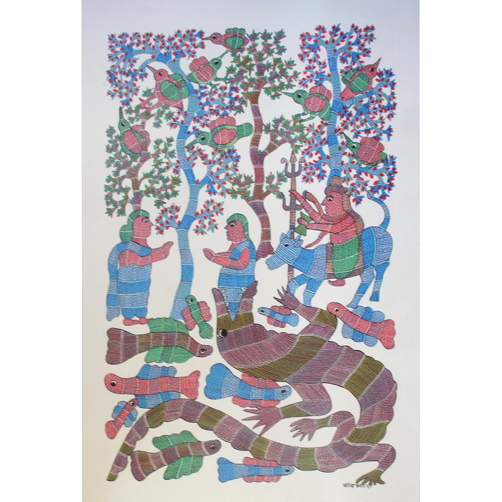 Artiste : Veerandra Kumar Dhurve, nén en 1987 Format : 91x64 Tarif : 750 EurosAnnée : 2012 Matière / Technique : Acrylique sur toile Thème : Inde